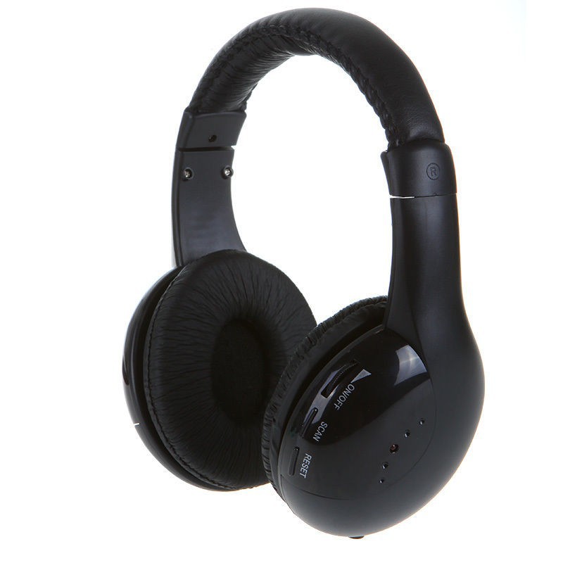 5 in 1 Wireless Audio-chat Headphone Earphone Black for MP3/MP4 PC TV CD FM Radio+Free Shipping1. Wireless net chat. It's perfect audio-chat tool, provides infinite enjoyment 2. FM radio function. The headset can be used as FM radio separately, search and lock channels automatically 3. Wired earphones. Equipped with audio cable, the receiver can be used as a wired earphone 4. Wireless monitoring. Place the emitter near baby, old people and sick people who need care, and the sound of the cared people can be heard with the receiver, for easy care